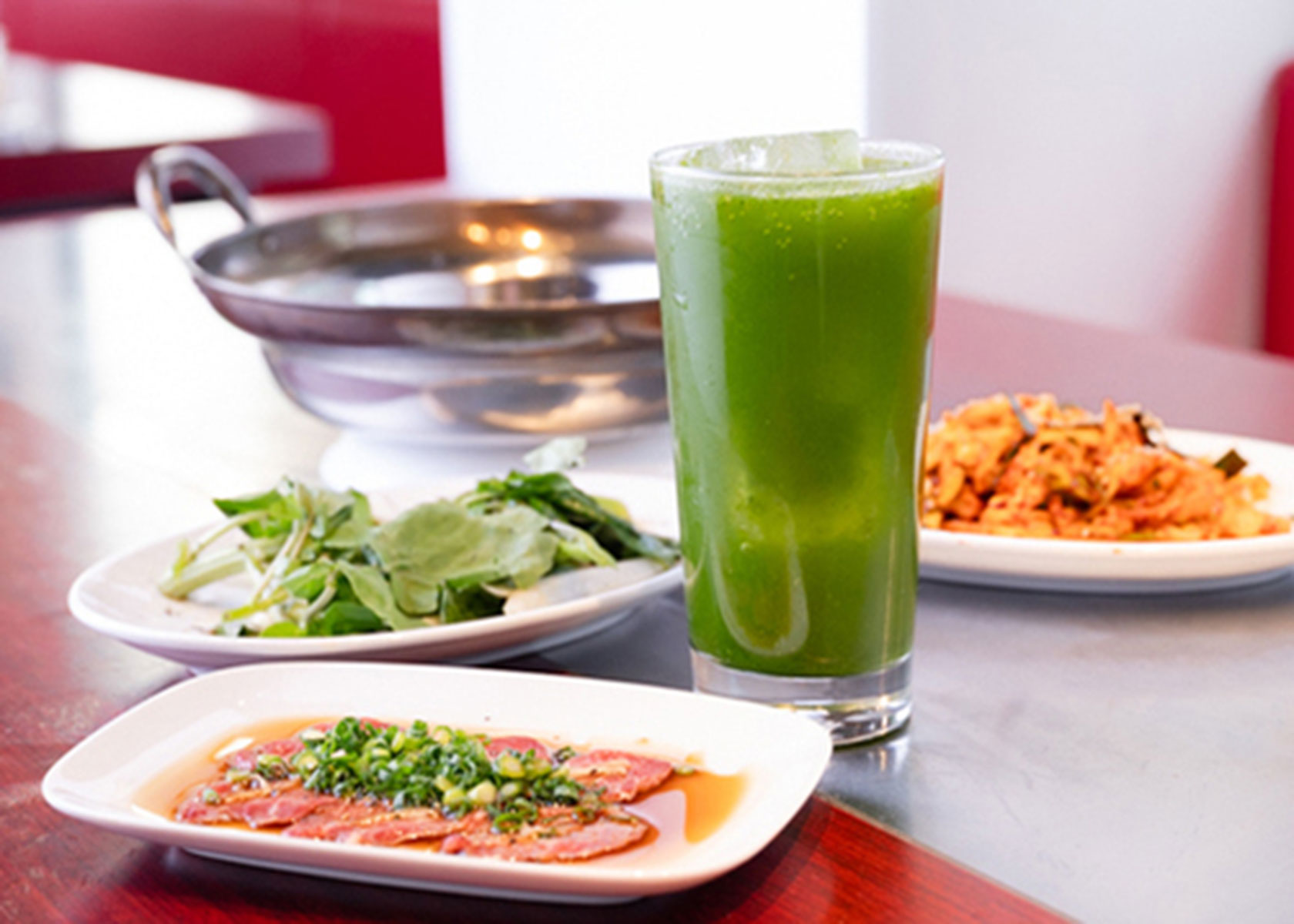鮮度抜群のラムサシやラムユッケもおすすめ。ドリンクはアイスマッコリや小松菜チューハイなど多彩に用意されています。小松菜チューハイ飲んだことないのでこれは気になりますね。