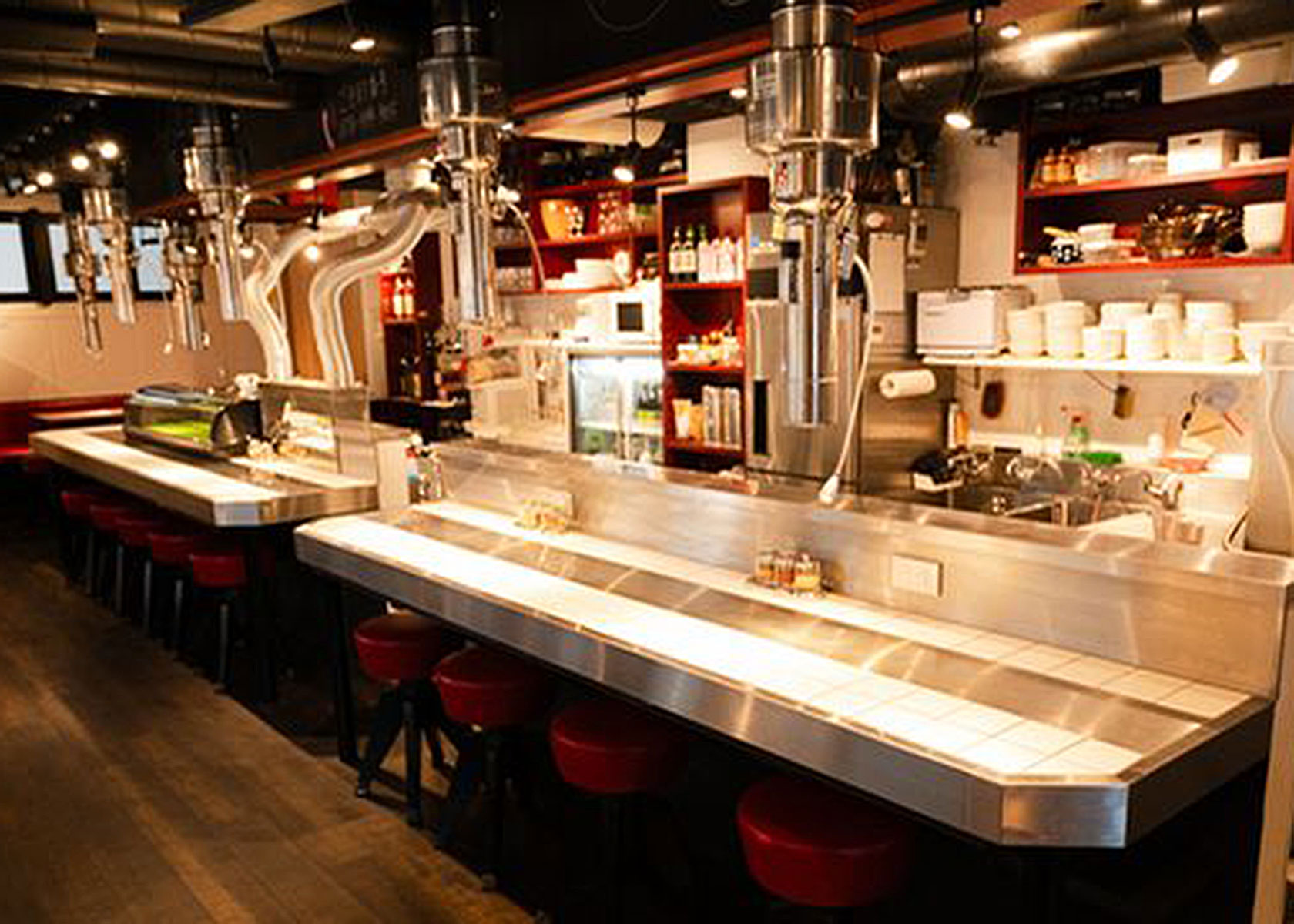 店内にはダクトを完備し、臭いと煙対策もばっちり。ジンギスカン店で気になる「匂いがついたら・・・・」問題もクリアし、羊肉のハードルを思いっきり下げています。そして、赤色のテーブルと木を基調とした空間で羊焼き肉を楽しむことができます。
