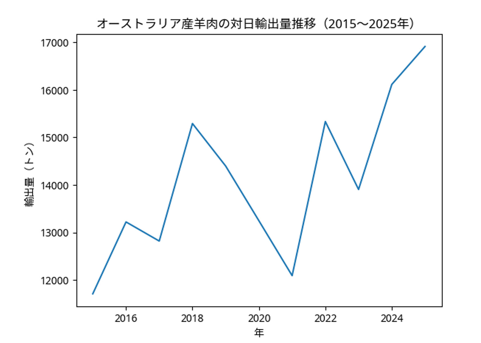 オーストラリアから日本への羊肉(ラム+マトン)の輸出量は、2015年には約1.1万トンだったのに対し、2025年には約1.7万トンまで増えています。約10年で1.4倍以上に増加。つまり、うれしい事に日本で食べられているラムは、確実に増えています。